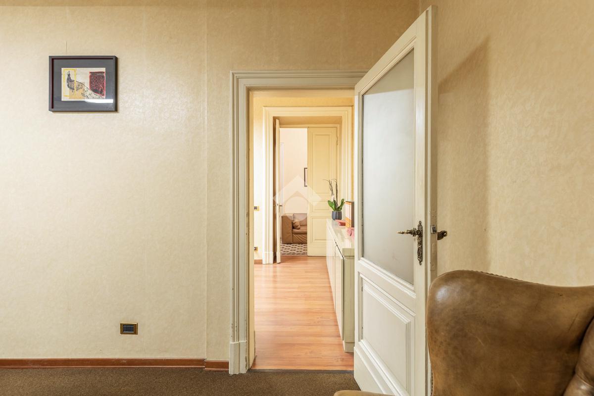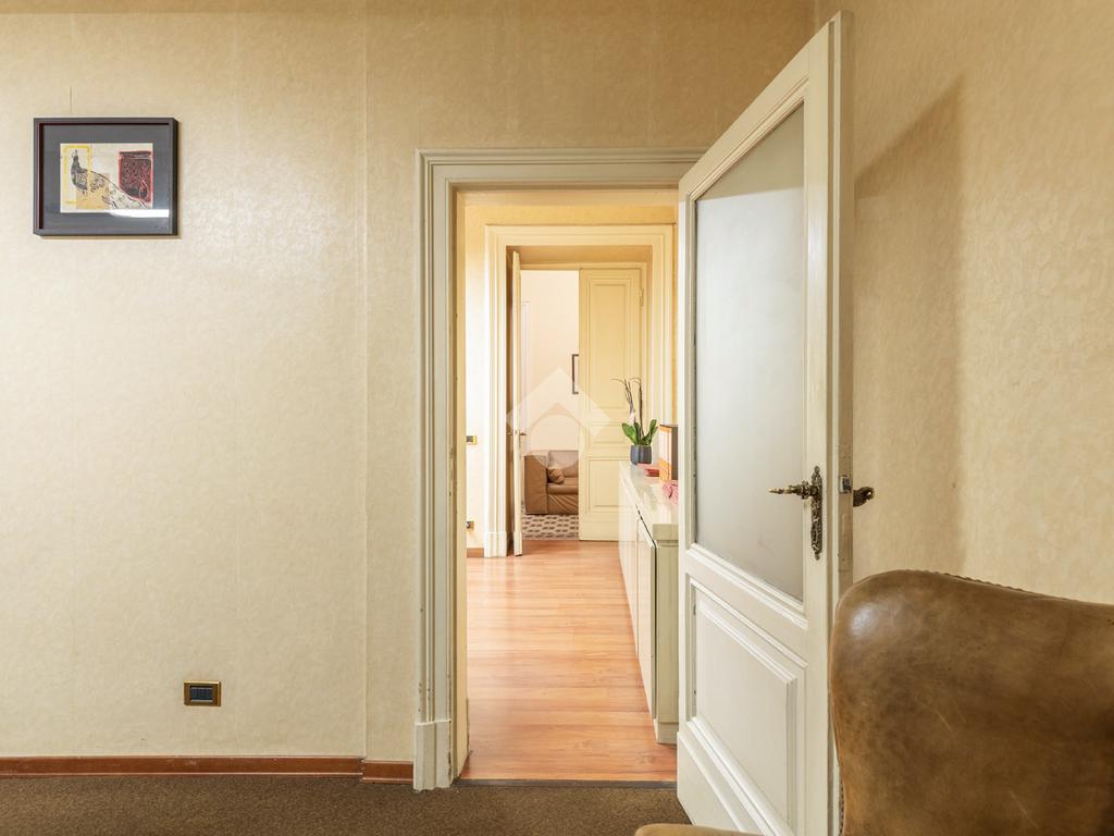 La doppia esposizione e le numerose finestre rendono l’ambiente particolarmente luminoso, mentre i soffitti alti 3,30 metri e il parquet nelle camere aggiungono eleganza e carattere agli spazi.