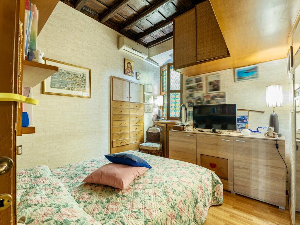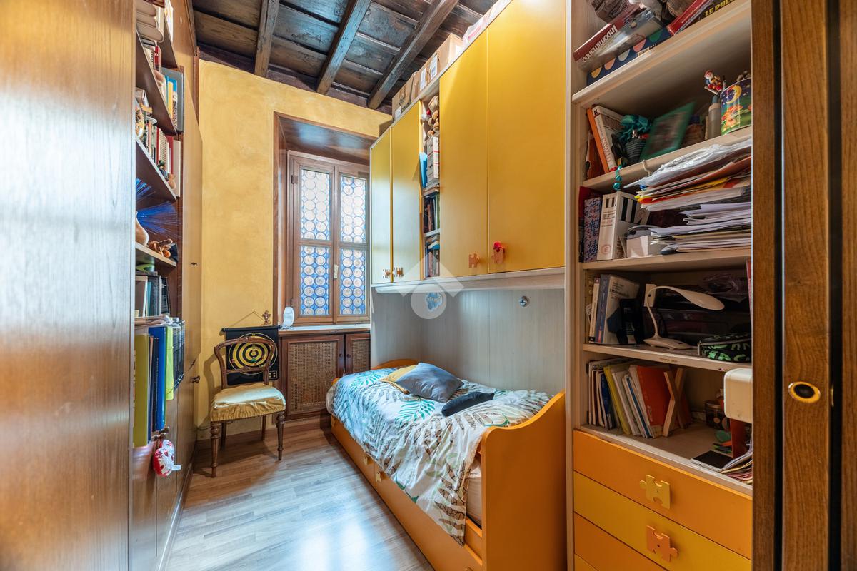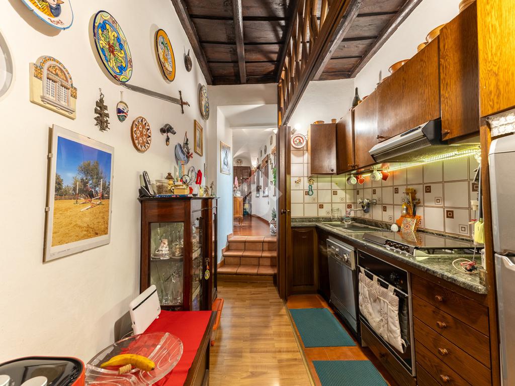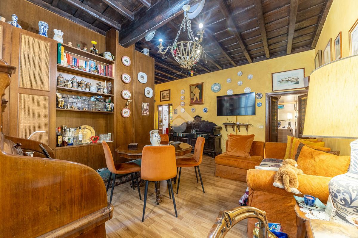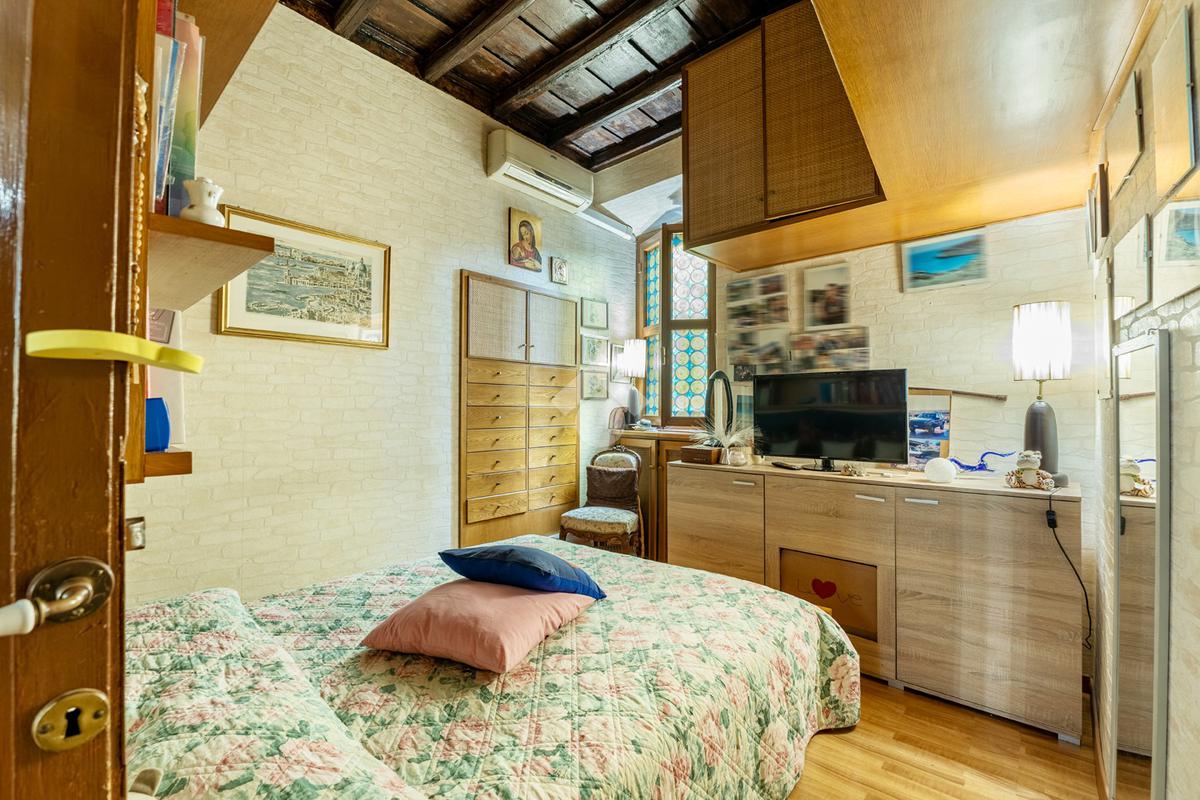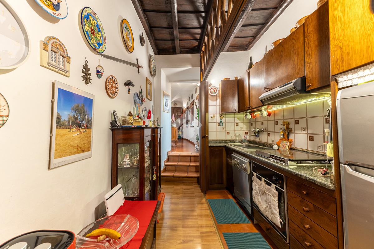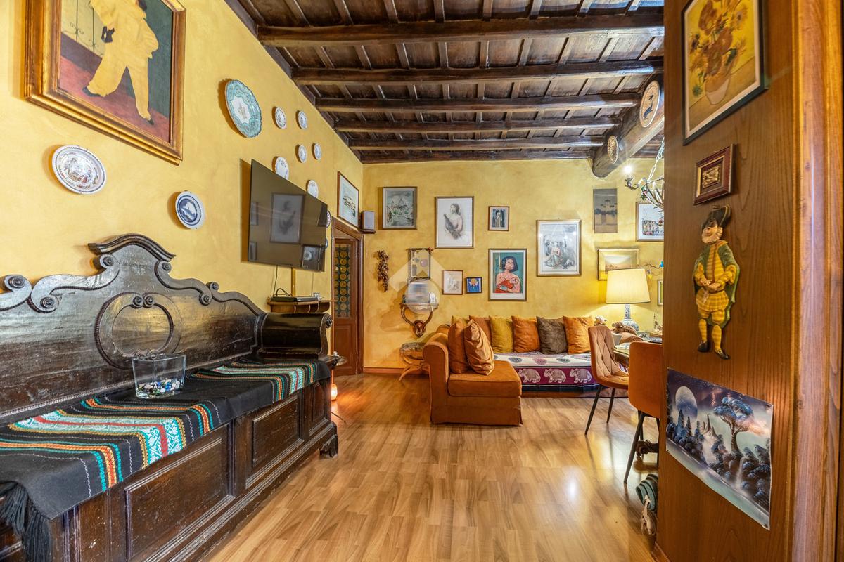 L’appartamento unisce elementi tipici delle abitazioni storiche (come travi in legno a vista e parquet) ad una buona distribuzione degli spazi con ingresso, salone con due finestre, camera matrimoniale, seconda camera, servizio finestrato, angolo cottura e ripostigli si presenta in buono stato di manutenzione e si presta perfettamente sia come abitazione principale, per chi desidera vivere il centro storico senza rinunciare alla tranquillità, sia come investimento di valore in una delle zone più richieste e stabili del mercato romano.